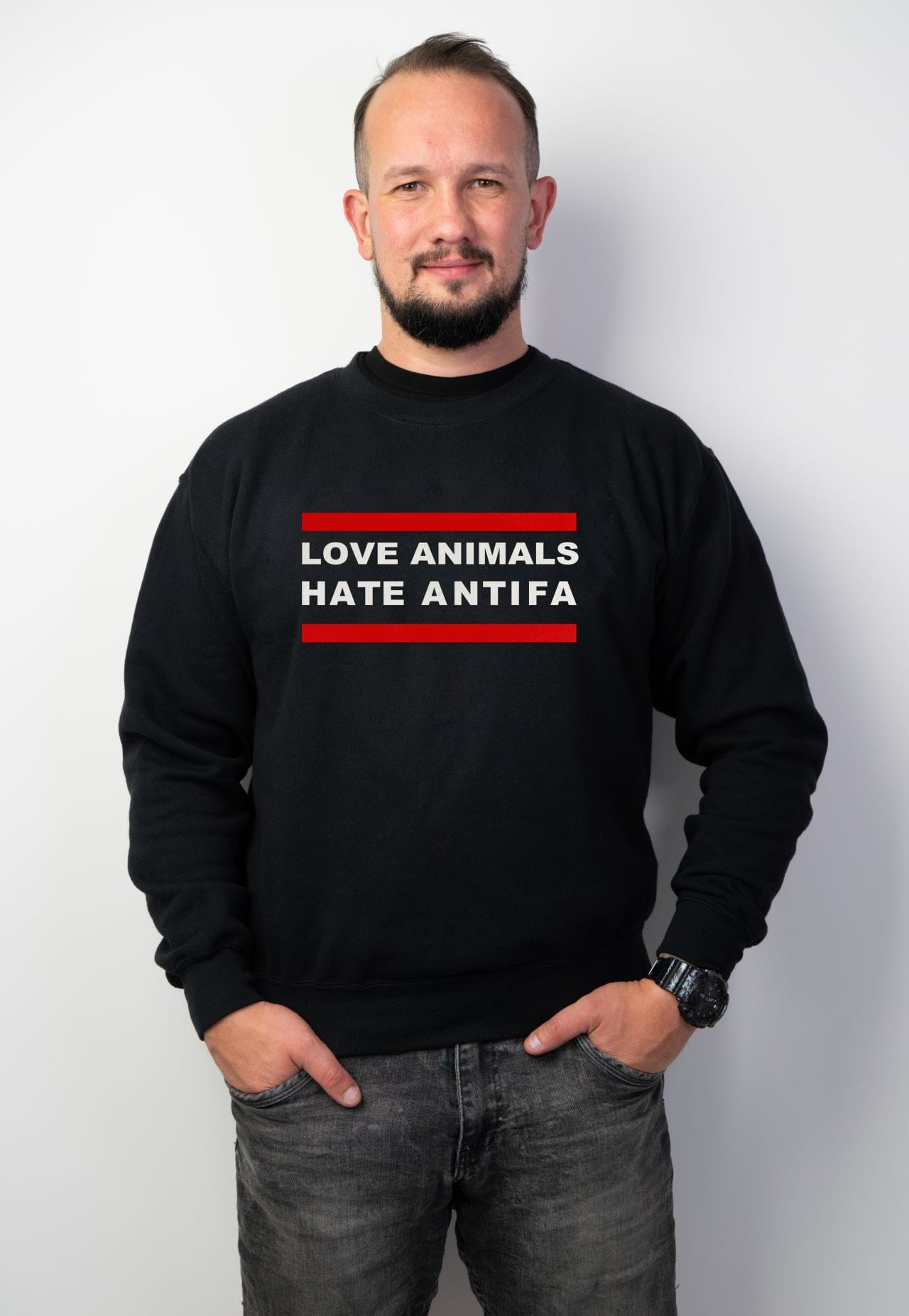Bluza Love Animals Hate Antifa to idealny wybór dla osób, które nie boją się głośno wyrażać swoich przekonań i cenią sobie zarówno miłość do zwierząt, jak i zdecydowany sprzeciw wobec ruchów skrajnie lewicowych. Ta wyjątkowa bluza to więcej niż tylko ubranie – to manifest Twojej postawy wobec świata. Wybierz ją, jeśli chcesz połączyć swoje wartości z unikalnym stylem ulicznym, który nie pozostawia miejsca na kompromisy.