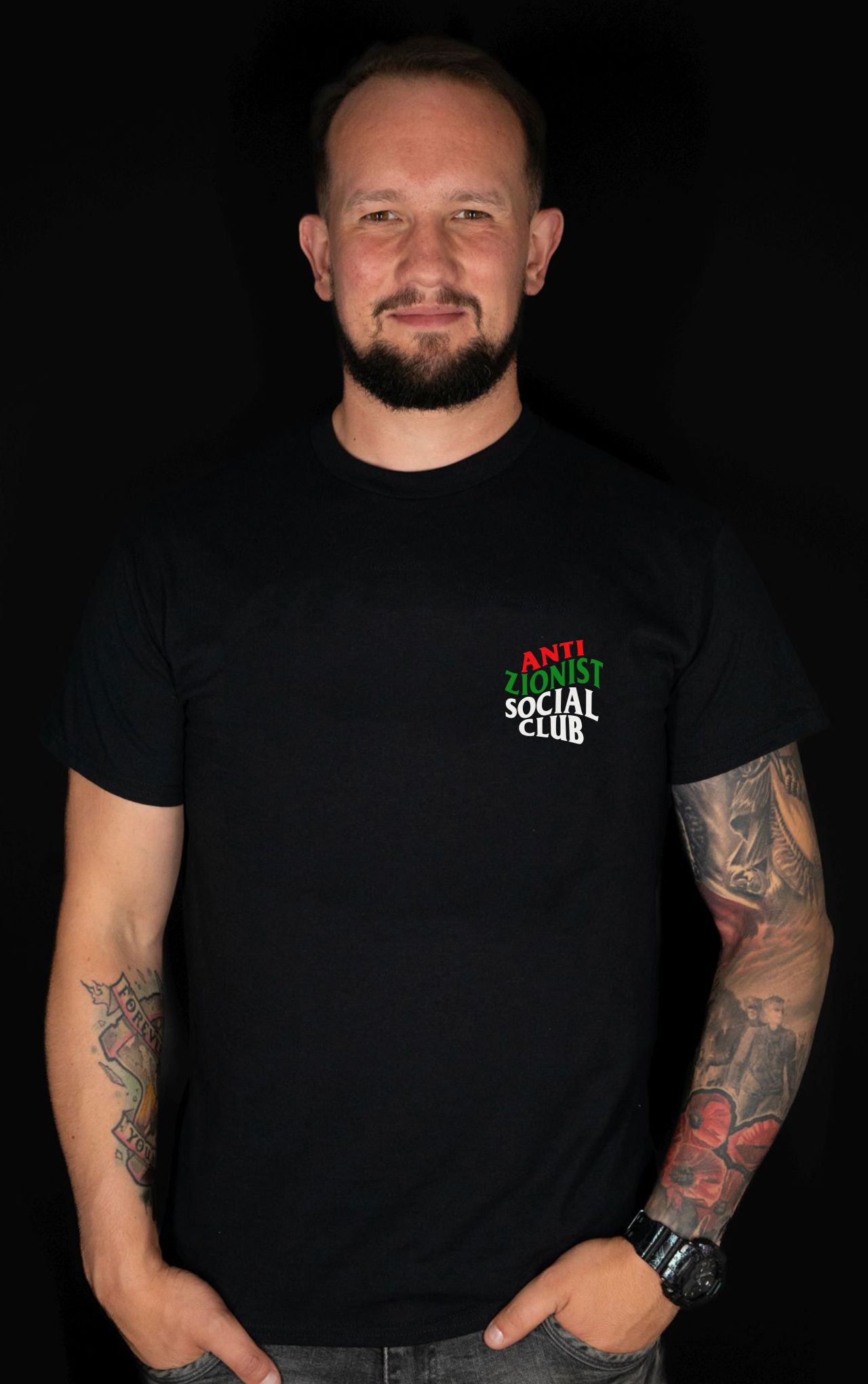 Nazwiemy to designem, ale tutaj mamy do czynienia z przekazem — świadomym, jednoznacznym i zamkniętym w czystym, minimalistycznym układzie graficznym. Nadruk Anti-Zionist Social Club to nie ozdoba, to deklaracja. Typografia została dobrana tak, by była czytelna z odległości, a jednocześnie estetyczna w detalach — bez zbędnych ozdobników, za to z mocnym akcentem stylistycznym. Całość pozostaje na tkaninie — nie dominuje nad strojem, ale współgra z resztą stylizacji: nosimy ją z dżinsami, bojówkami czy szortami i zawsze widać, że wybór jest przemyślany. Jakość nadruku przekłada się na rzeczywistą trwałość — nie ma ryzyka, że po kilku praniach napis rozwarstwi się albo zblednie — wręcz przeciwnie, aktualne parametry pozwalają koszulce pozostawać „czytelną” nawet po długim czasie. To więcej niż t-shirt — to narzędzie autoprezentacji, które działa, kiedy staje się częścią codziennego ubioru i można na nim polegać.