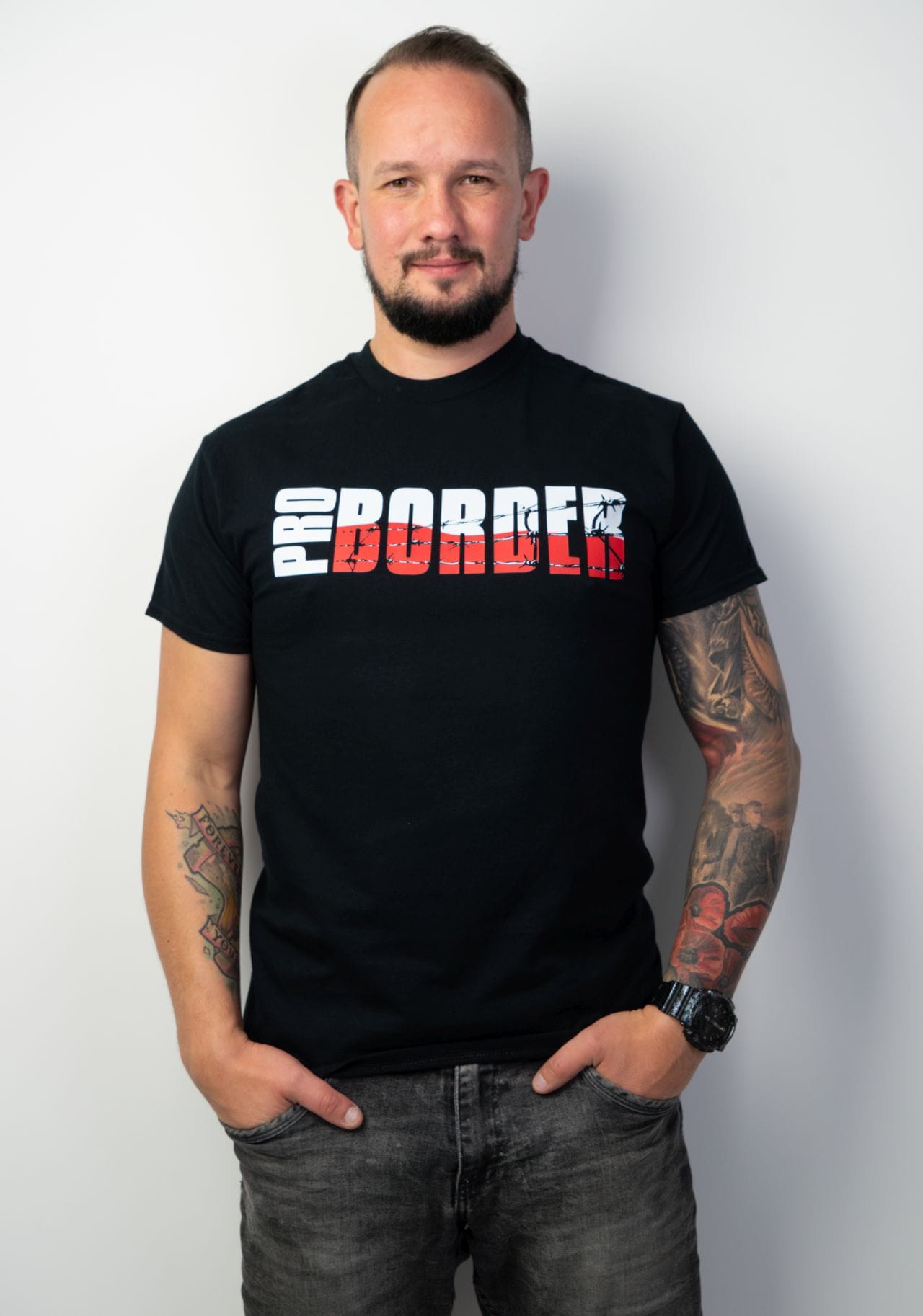 Ubrania, które nosimy z dumą, powinny być tak trwałe, jak idee, które reprezentują — i koszulka Pro Border w pełni realizuje tę zasadę. Zastosowanie wysokogatunkowej bawełny o gramaturze 200 g/m² to wybór przemyślany — materiał jest odpowiednio gruby, by nie prześwitywał i zachował fason, a jednocześnie wystarczająco miękki, by zapewnić pełen komfort noszenia. Koszulka świetnie znosi wielokrotne pranie i noszenie, co czyni ją idealną do użytku zarówno okazjonalnego, jak i codziennego. Nie musimy się martwić, że po kilku praniach straci swój pierwotny kształt — materiał pozostaje sprężysty, nie odkształca się i nie traci koloru.