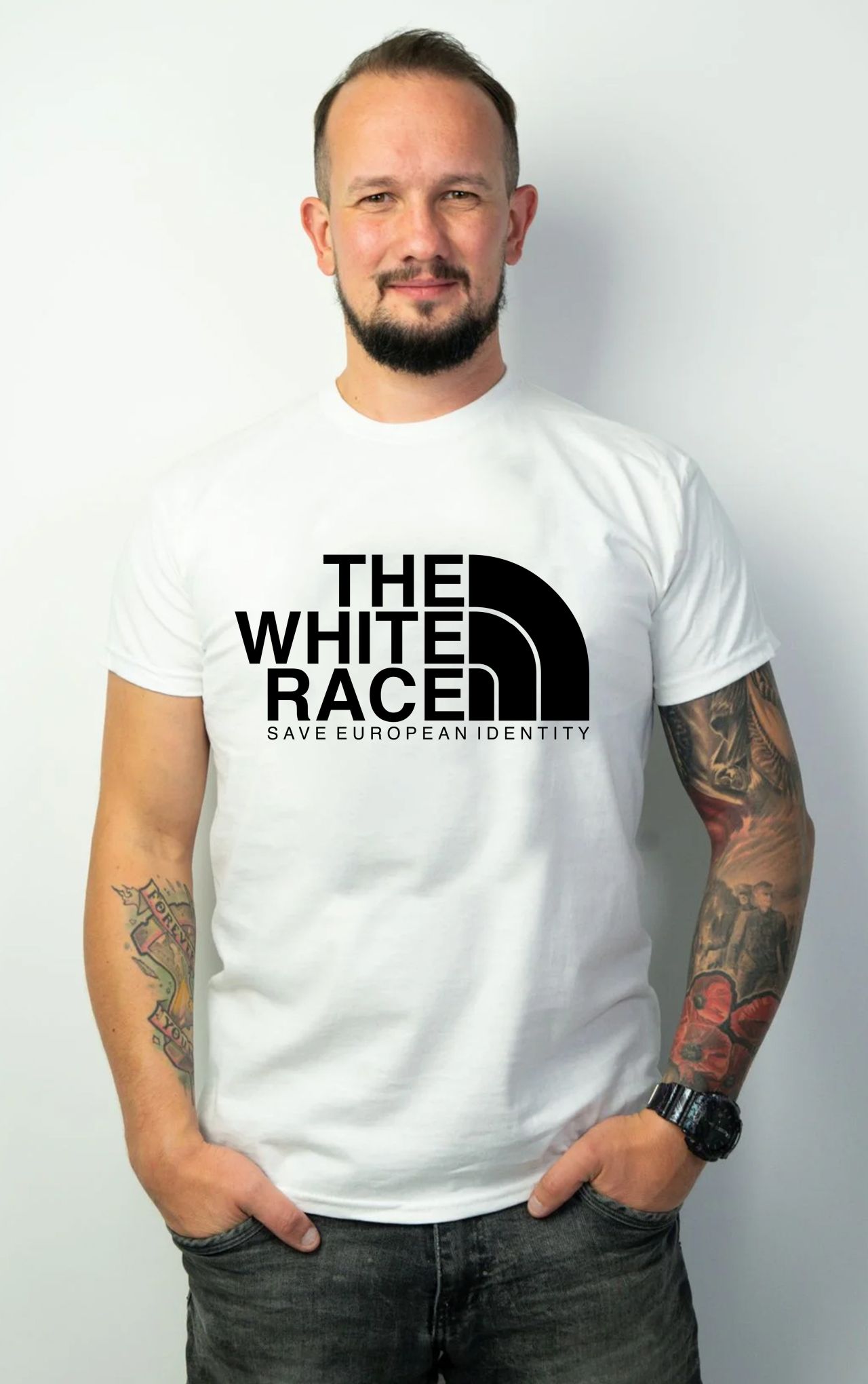 W czasach, gdy Europa zmaga się z coraz bardziej agresywnym naporem ideologii próbujących rozmyć granice narodowe i kulturowe, my stawiamy na jasny i niepodważalny przekaz. Koszulka The White Race – Save European Identity to coś więcej niż odzież – to deklaracja, z którą nie da się pomylić.